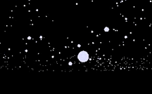 And if you wanted to live dangerously and orbit the black hole close to the event horizon, you'd see even greater distortion in space-time. Notice how you can't see into the black hole or throught it, even though its mass is concentrated at one point. That's because light itself is trapped inside. The starlight from background stars falls on the black hole, but once it enters the event horizon, there's no escape. |