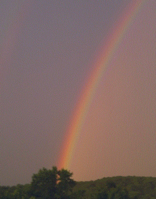 If you shine the light from any star through a prism, the light separates out into all its many component colors. Tiny water droplets in the sky can make a big prism, resulting in a rainbow. Astronomers call it a spectrum. As you can see, the sun radiates many different colors, yet the sun is brighter at yellowish wavelengths than at red or blue because of its temperature.